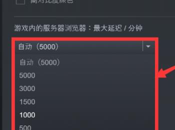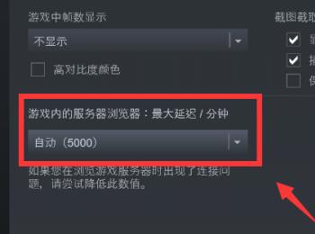 4. 然后在打开的页面,我们就可以看到“游戏内的服务器浏览器:最大延迟”的选项了。