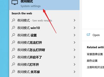 2. 第二步在搜索框中输入【夜间模式】,根据下图箭头所指,点击【夜间模式】选项。