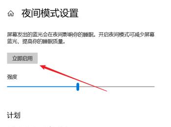 6. 最后根据下图箭头所指,还可以点击【立即启用】选项,手动开启夜间模式。