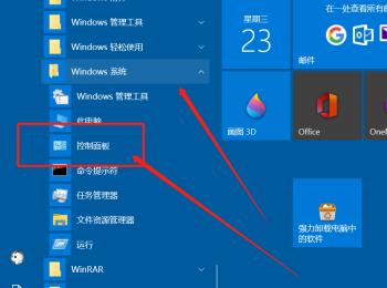 2. 在打开的开始菜单中,选择Windows系统展开,然后点击控制面板选项;