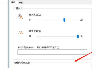 5. 如图,在弹出的键盘属性窗口中,下方就可以对光标闪烁速度进行调节了,向左侧滑动为无,右侧为快;