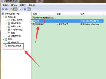 3.第三步,在下图所示的管理页面中,点击页面左侧的服务和应用程序选项,接着打开箭头所指的服务选项。