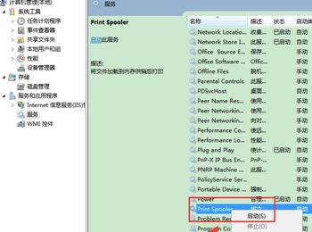 4.第四步,我们可以看到如下图所示的服务页面,右击print splooler(打印机服务),接着点击弹出窗口中的启动选项。