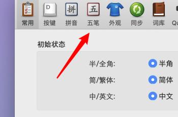 3. 在打开的偏好设置窗口中,上方切换到五笔选项下。