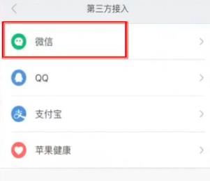 4. 如图,在打开的第三方接入页面,选择微信选项。