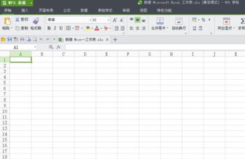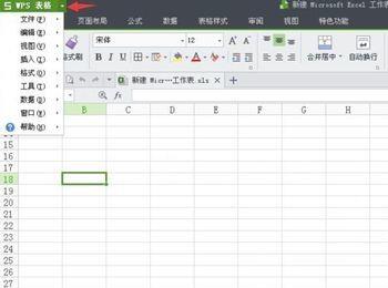 在打开新建表格后,找到窗口最左上的WPS表格后面的小三角图标且点击一下它。