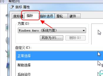 5. 如图,在弹出的鼠标属性窗口中,上方切换到指针选项下。