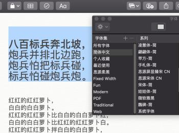 ② 接下来,按键盘上的command T组合键,就会调出字体窗口,如图,根据自己的需要调整字体和大小即可。