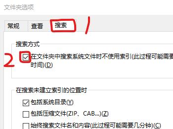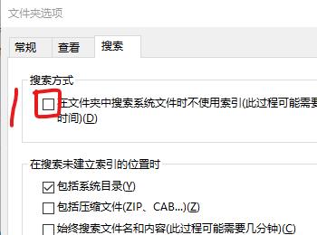 3. 之后取消勾选“在文件夹中搜索系统文件时不使用索引”这个选项,并点击应用就可以完成刷新了。