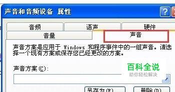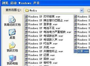 在“音乐和音频设备 属性”的最下方“声音”处,点击浏览按钮,并选择你喜欢的音乐/某段铃声,也可以把你喜欢的音乐复制到这里面,但一定要注意音乐是.wav格式。