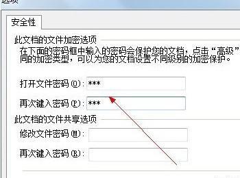 第二步、在弹出的“文档加密”对话框中键入密码,并再次输入密码以确认;
