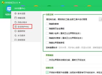 4. 在窗口中我们点击左侧栏中的安全防护中心。