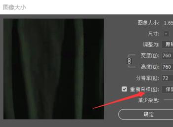 5. 第五步在弹出的窗口中,根据下图箭头所指,将【重新采样】选项设置为【保留细节2.0】,接着点击【确定】。