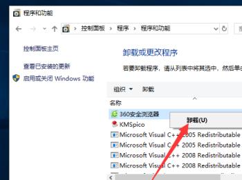 3. 如图,在打开的卸载或更改程序页面,找到想要卸载的软件,右键,点击显示的卸载按钮即可将软件卸载了。
