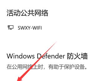 5. 最后在【活动公共网络】页面中,根据下图箭头所指,将【Windows Defender防火墙】设置为【关】即可。