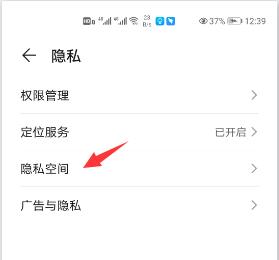 3. 在打开的隐私设置页面,选择“隐私空间”选项,打开。