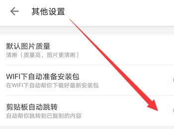 5. 第五步进入【其他设置】页面后,根据下图箭头所指,找到【剪贴板自动跳转】选项。