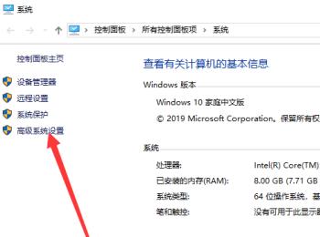 2. 打开如图页面,点击左侧的【高级系统设置】选项