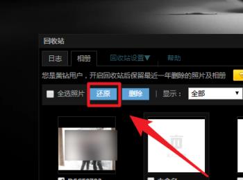 4. 第四步,点击选中想还原的删除照片,最后点击顶部的还原按钮。