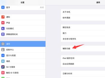 2.在通用页面,点击箭头指示的【辅助功能】选项