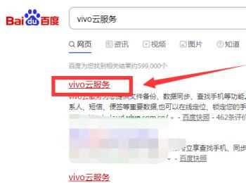 1. 首先第一步打开电脑浏览器,根据下图箭头所指,搜索并点击【vivo云服务】选项。