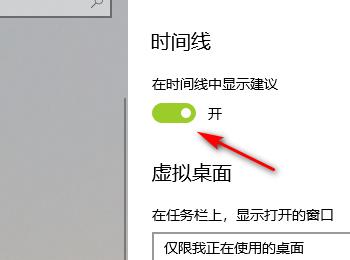 6. 最后根据下图箭头所指,将【时间线】选项设置为【开】即可。