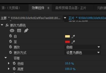找到效果控件中的“更改为颜色”。在“自”选项中用吸管工具选择要改变的颜色,在“至”选项中用拾色器选中改变成什么颜色