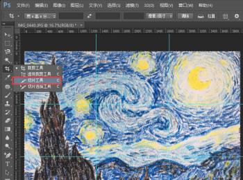 2. 第二步,点击左侧的裁剪工具按钮,然后在展开列表中选择切片工具选项。