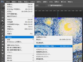 5. 第五步,切换创建完成后,依次点击文件、导出、存储为web所用格式(旧版),也可以使用快捷键ctrl+shift+atl+s。