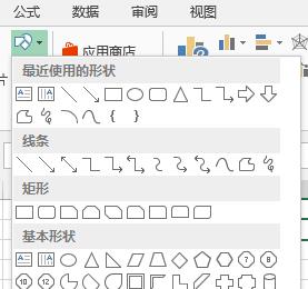 3.第三步,在下图所示的插入页面中,点击形状右边的下拉箭头。
