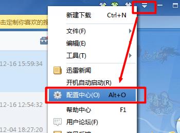 打开迅雷程序,点击“菜单”->“配置中心”项。