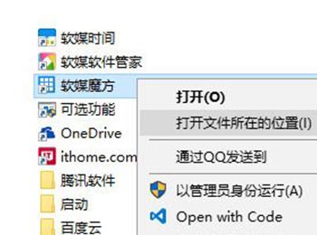 2、右键单击软媒魔方磁贴—更多—打开文件所在位置,如下图所示:
