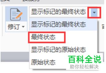 4. 点击“显示标记的最终状态”旁边的“倒三角”,在打开的菜单中,选择“最终状态”选项。