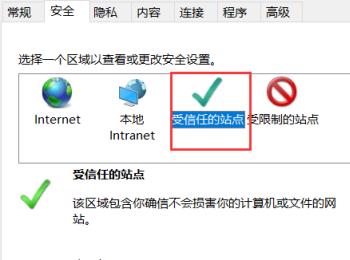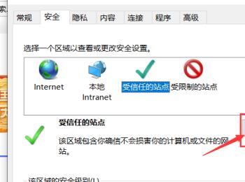 5. 第五步,在安全设置页面下,点击受信任的站点图标。