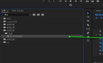 3. 然后在 效果面板中,输入果冻进行搜索,或者依次点击视频效果—扭曲—找到果冻效应修复选项。