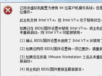 已将该虚拟机配置为使用 64 位客户机操作系统。但是,无法执行 64 位操作。
