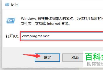 2.在红色框处输入“compmgmt.msc”按回车或者“确定”