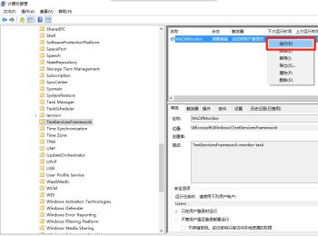 3.打开如图页面,依次打开“系统工具 > 任务计划程序 > 任务计划程序库 > Microsoft > Windows > TextServicesFramework”文件夹,然后右击右边的“MsCtfMonitor”,弹出窗口选择“运行”