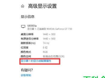 3. 在打开的高级显示设置下,可以看到我们当前显示器的相关参数,点击下方的显示器适配属性选项。