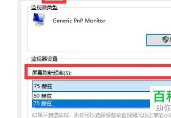 5. 设置的时候需要注意一下:要看我们的电脑支持多少的刷新频率,设置过高会影响显示器的使用寿命,一般推荐大家保持在60HZ-75HZ即可。根据自己的需要选择。