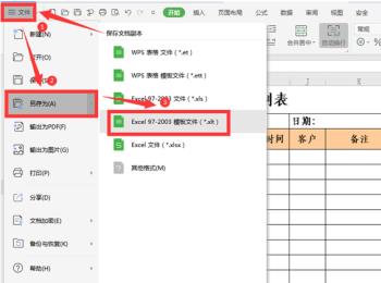 1. 打开一个空白的Excel文档,编辑好表格后,点击菜单栏的“文件——另存为”选项,弹出窗口选择【Excel 97-2003模板文件】选项。