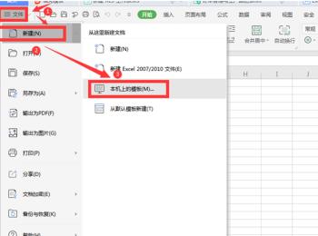 3.打开空白Excel表格,点击菜单栏的【文件——新建——本机上的模板】选项