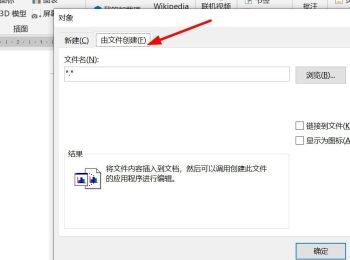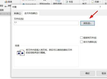 3. 在弹出的对象窗口中,上方切换到“由文件创建”选项下,点击右侧的“浏览”按钮。