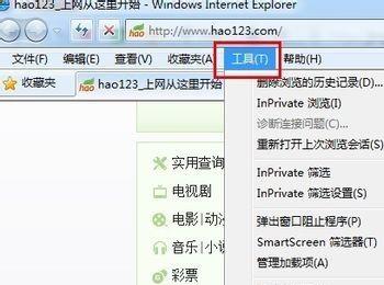 在菜单栏找到“工具”,然后打开“Internet选项”