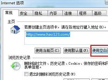在”常规”选项卡中,单击”使用空白页”按钮