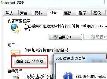 在”内容”选项卡中,单击”清除SSL状态”