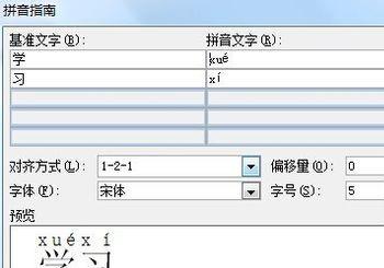 给文字标注拼音的操作。选中文字,点击带拼音的图标,弹出对话框进行拼音的设置