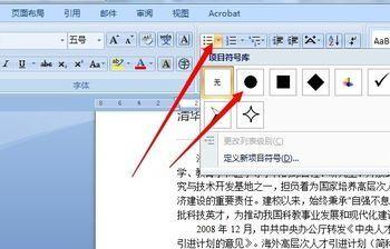 给段落加入项目符号的操作。将光标定位到需要进行设置的段落最前端,然后点击段落选项卡的项目符号按钮