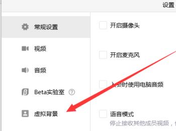 4.在弹出的设置窗口中,点击左侧的虚拟背景选项。