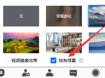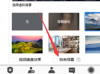 5. 在打开的选择虚拟背景的窗口中,勾选上下方的我有绿幕。